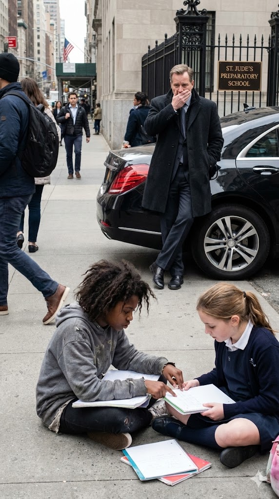 Beside her sat a girl in ragged clothes, a backpack held together with duct tape at her feet. Her hair was unkempt, her shoes clearly too large. Homeless—Nathan recognized the signs immediately.