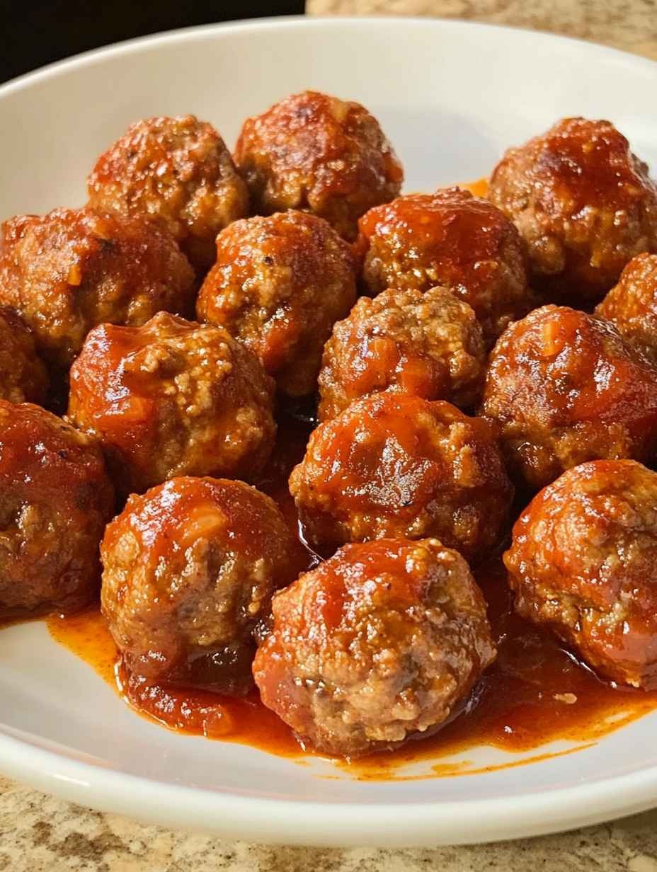 Tender, juicy meatballs smothered in a rich, tangy-sweet barbecue sauce. Perfect as a hearty appetizer or a main course served over mashed potatoes or rice.