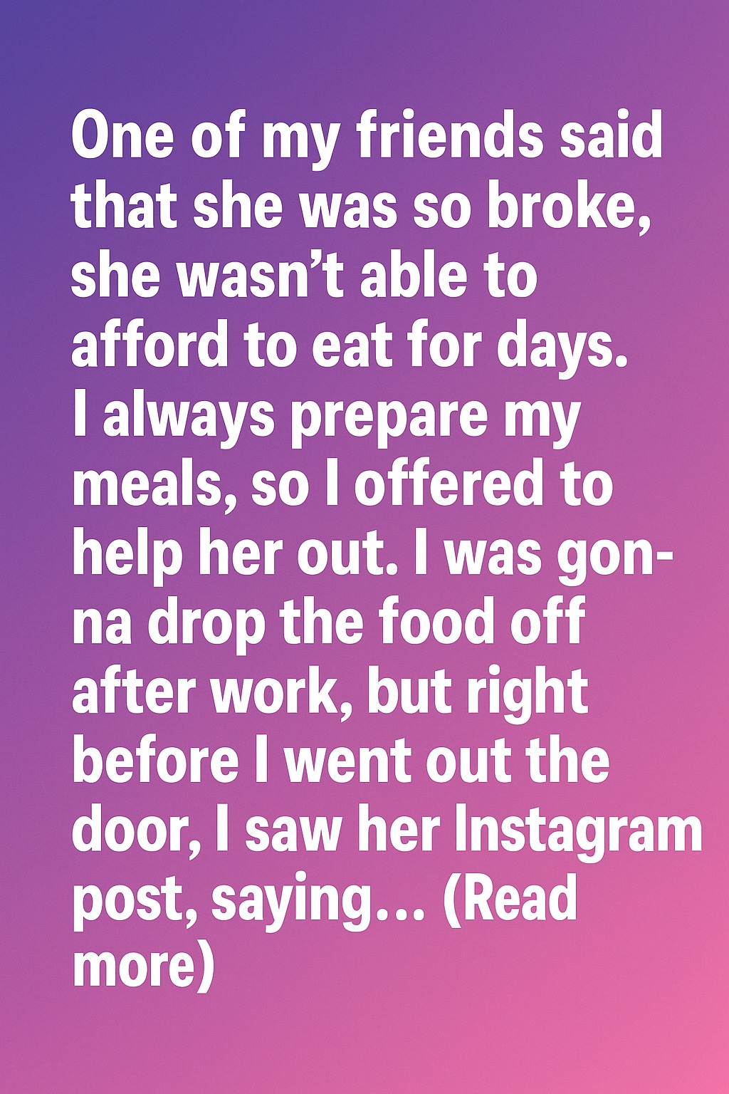 One of my friends told me she was so broke that she hadn’t eaten properly for days. Since I always prep my meals, I offered to bring her some after work. I packed everything carefully, hoping it would give her even a little bit of comfort. But just as I was about to leave, I saw her Instagram post—she was out with friends at a café, smiling over a dessert she claimed she couldn’t afford.