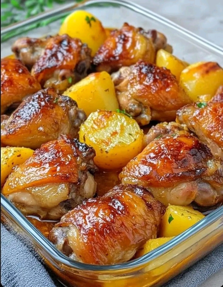 A simple, one-pan meal where juicy, herb-rubbed chicken and golden potatoes roast together to perfection. The result is incredibly crispy skin and tender, flavorful potatoes with minimal cleanup.