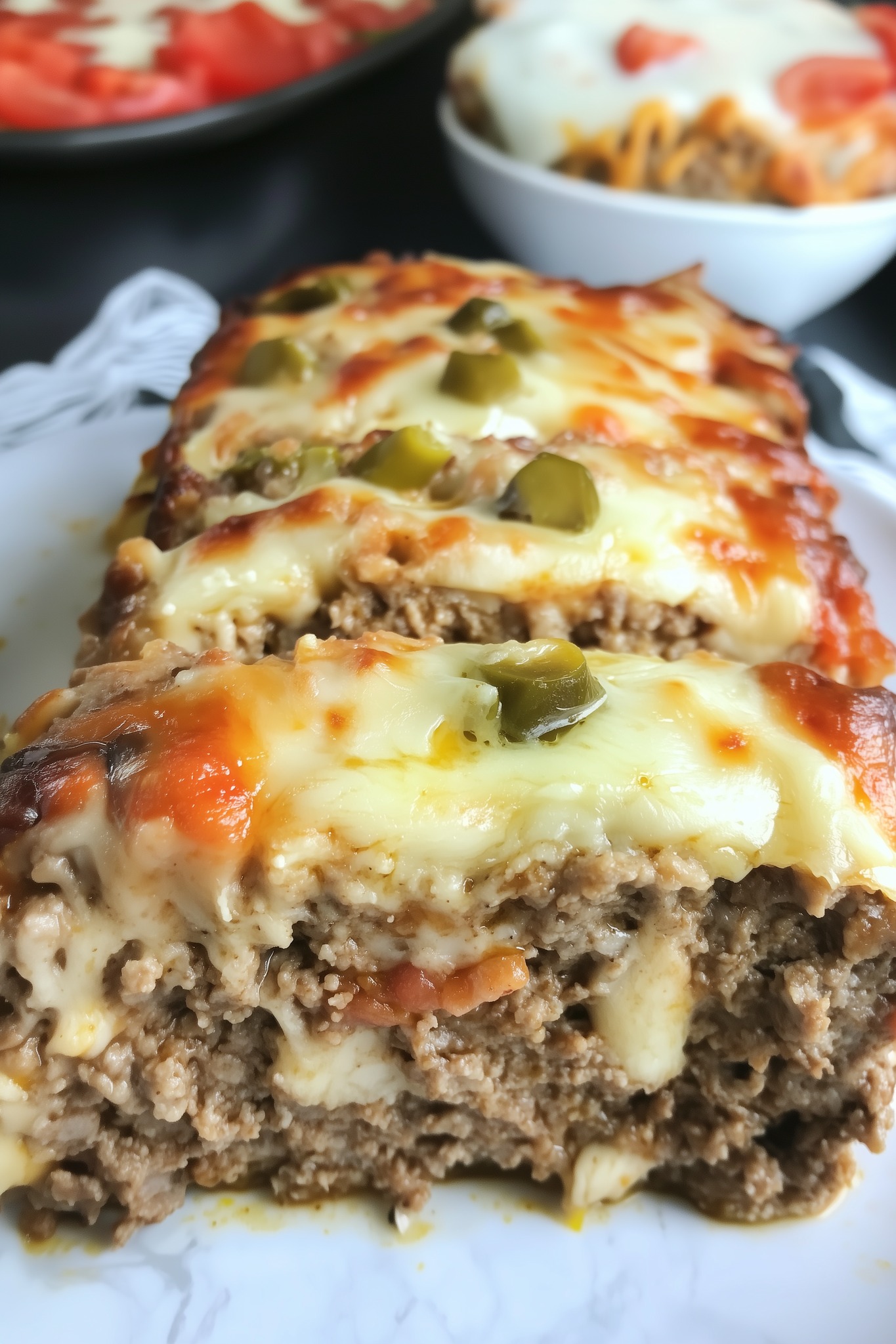 A delicious twist on two classics! This meatloaf is packed with savory sautéed peppers and onions and features a gooey, cheesy provolone center.