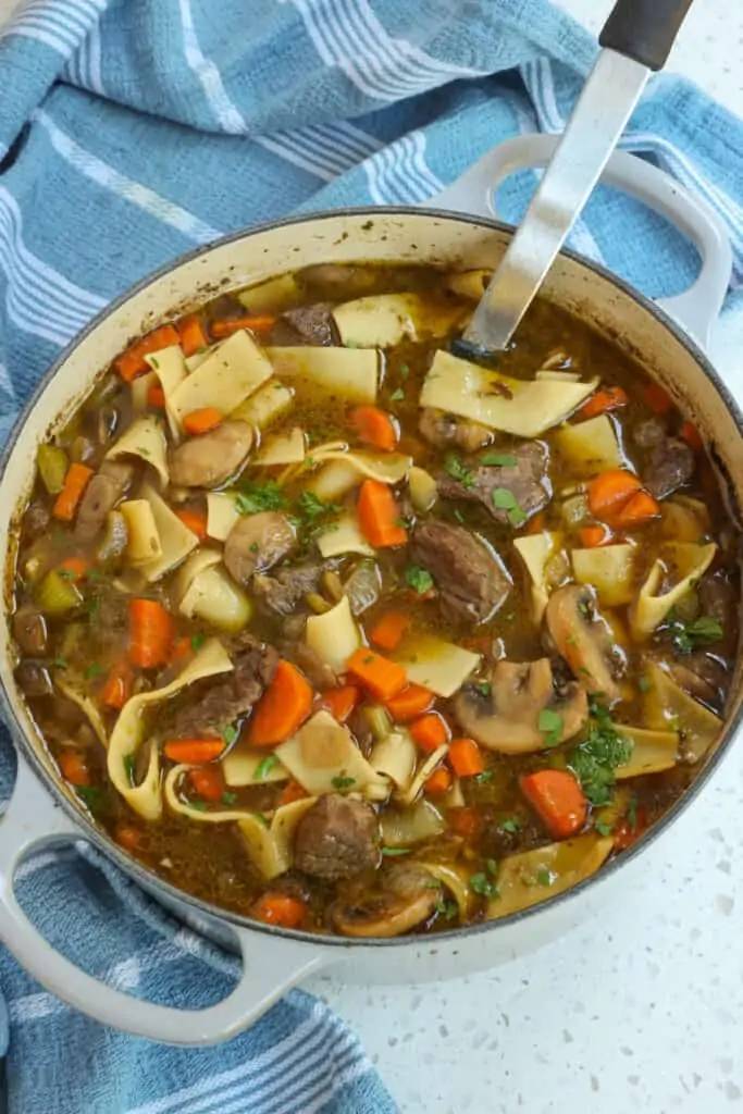 Embark on a culinary journey with the soul-soothing simplicity of a classic Beef Noodle Soup, where tender slices of beef, wholesome vegetables, and perfectly cooked noodles unite in a comforting bowl. The creation of this hearty dish begins with the aromatic sauté of onions and garlic, setting the stage for the savory symphony that is about to unfold. Thinly sliced beef takes center stage, browning to perfection and infusing the broth with its rich, meaty essence. As the pot simmers, a melody of carrots and celery join the ensemble, their vibrant colors and textures contributing to the soup’s wholesome appeal. The addition of soy sauce and Worcestershire sauce elevates the flavor profile, providing a perfect balance of umami and depth. Simmering patiently, the vegetables tenderize and meld their flavors with the savory broth, creating a fragrant elixir that promises comfort with every sip. Meanwhile, egg noodles cook to al dente perfection, ready to cradle the savory broth in each spoonful.