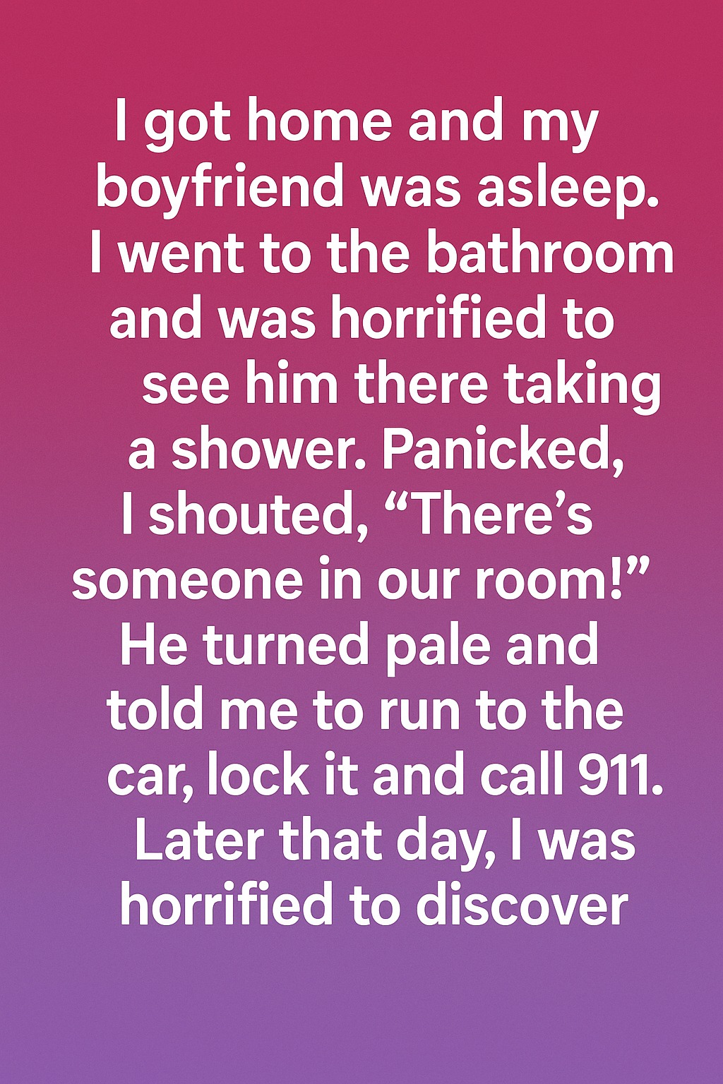 I got home, feeling exhausted from a long day at work. As I stepped inside, I noticed the soft glow of the living room lamp, and the faint sound of the TV from our bedroom. My boyfriend, Matt, was asleep on the couch, which seemed odd. He usually greeted me with a hug or a kiss, but tonight he was out cold. I shrugged off the strange feeling and went to the bathroom, hoping a warm shower would help me unwind. What happened next, however, would forever change my understanding of safety.