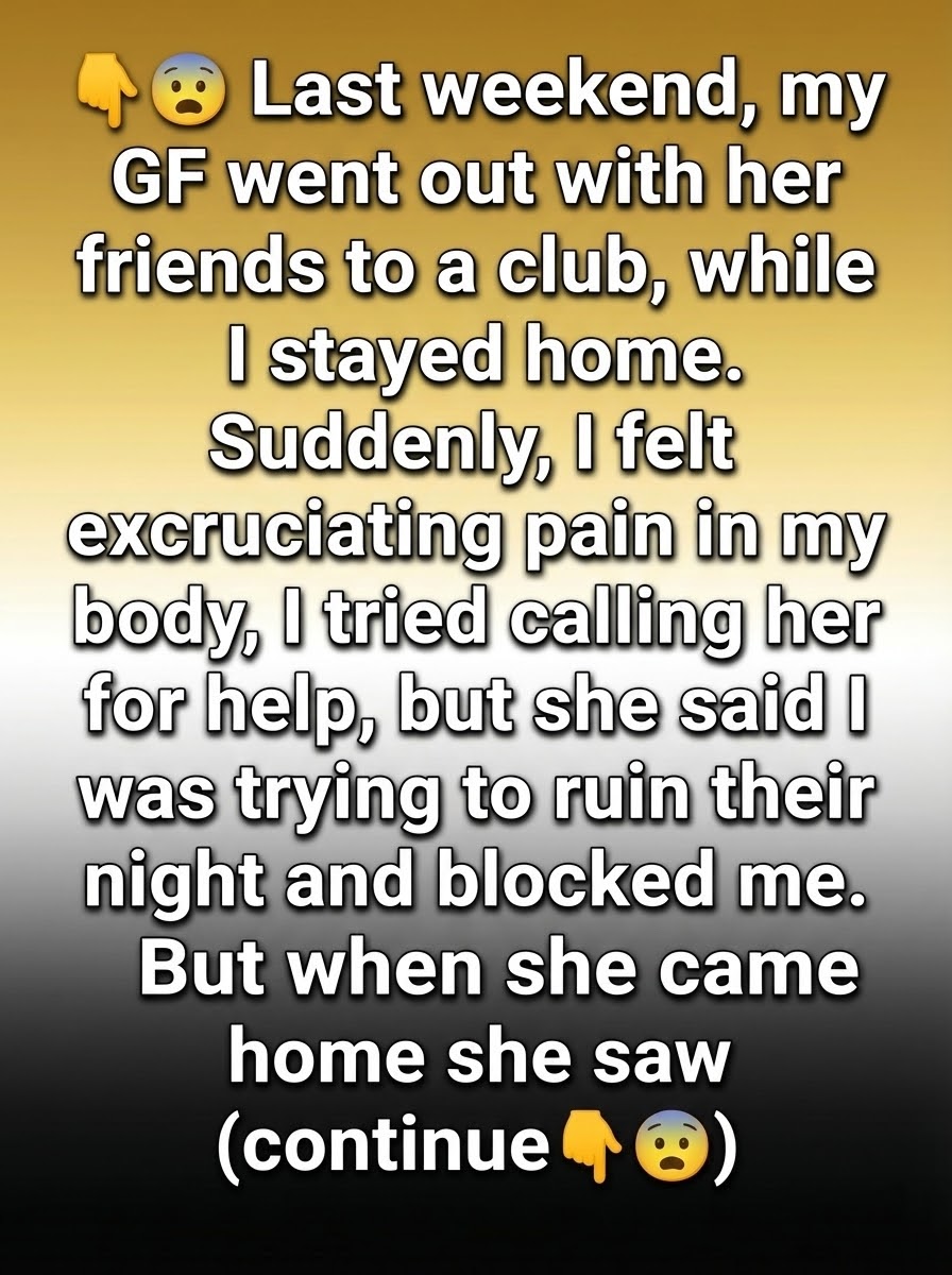 Last weekend was meant to be quiet. My girlfriend headed out to a club with her friends, laughing as she grabbed her jacket and told me not to wait up. I stayed home, ready for a calm night and some rest. Once the door closed, the apartment felt strangely empty—but I brushed it off. Then, without warning, a crushing pain ripped through my body, sharp enough to steal my breath. I sat down, then lay down, hoping it would fade. It didn’t. Panic slowly took hold.